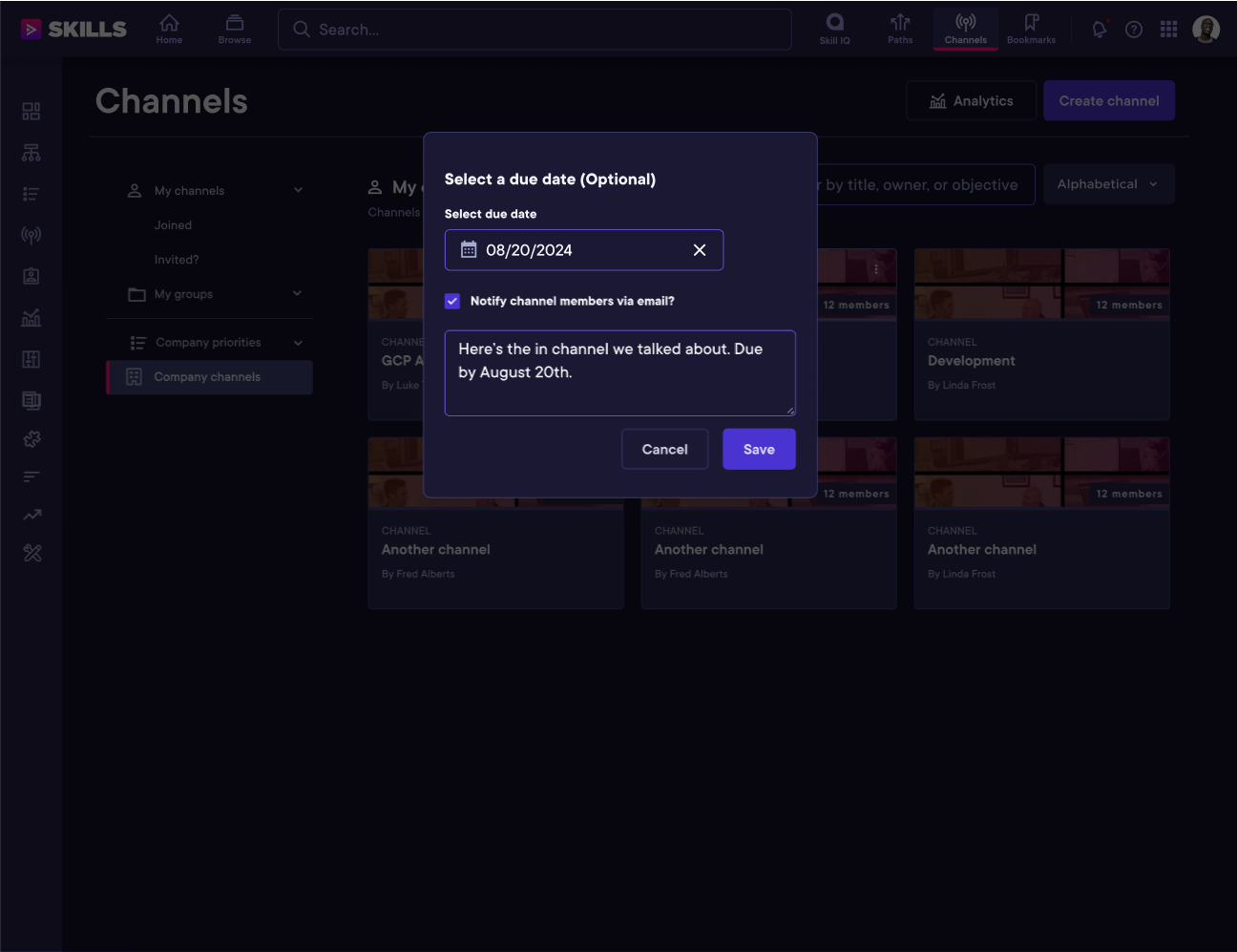 Create a clear way for managers to add a due date to a channel to track learning progress