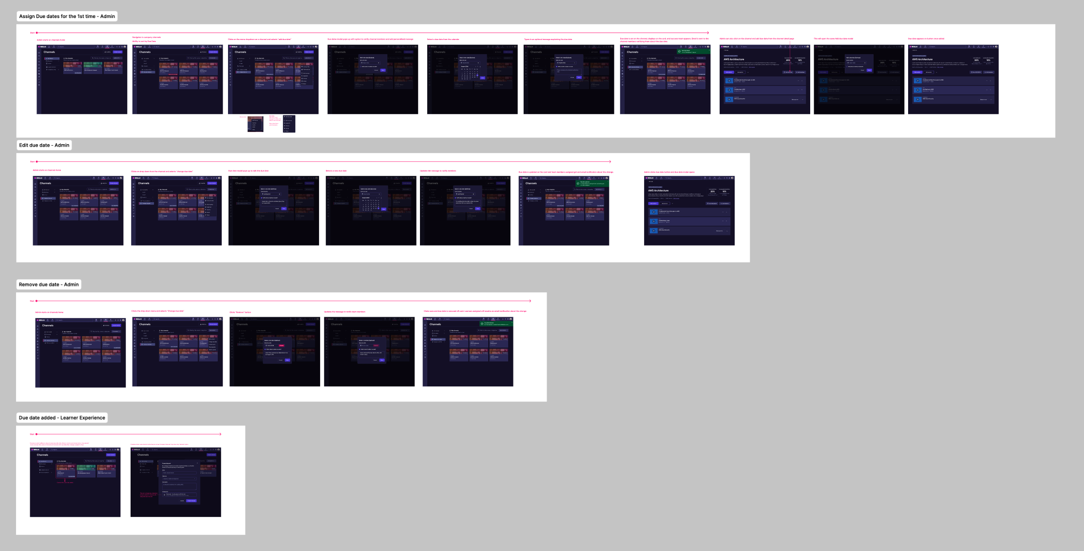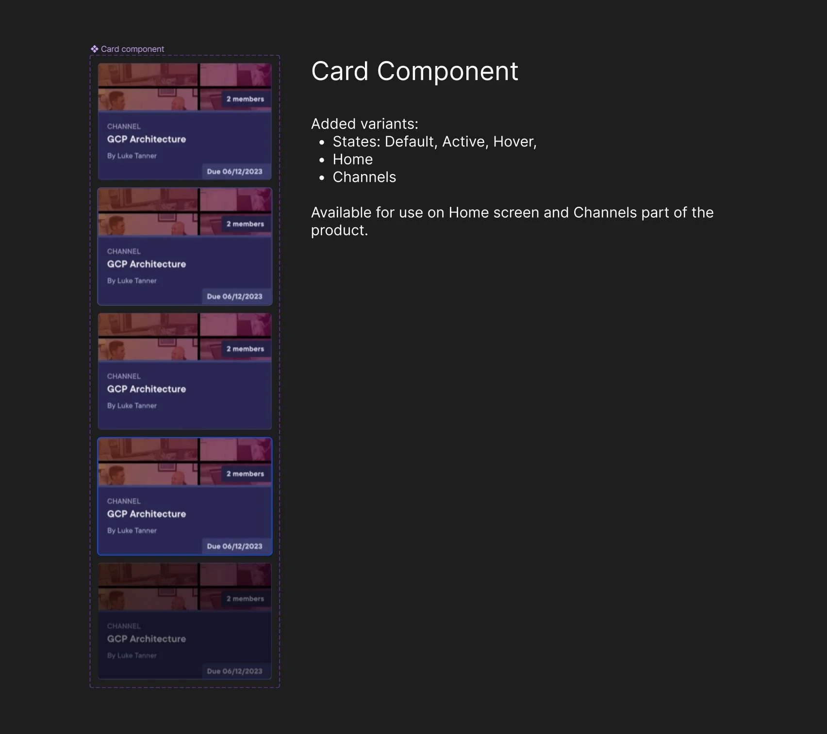 They needed a clear and intuitive way to administer their company channels such as adding a due date onto a channel to ensure their team members were completing course work, promote career growth and learning objectives within the organization and ability to delete and assign their team members to a channel they created. This required me to work on adding a new card design component to our design system.