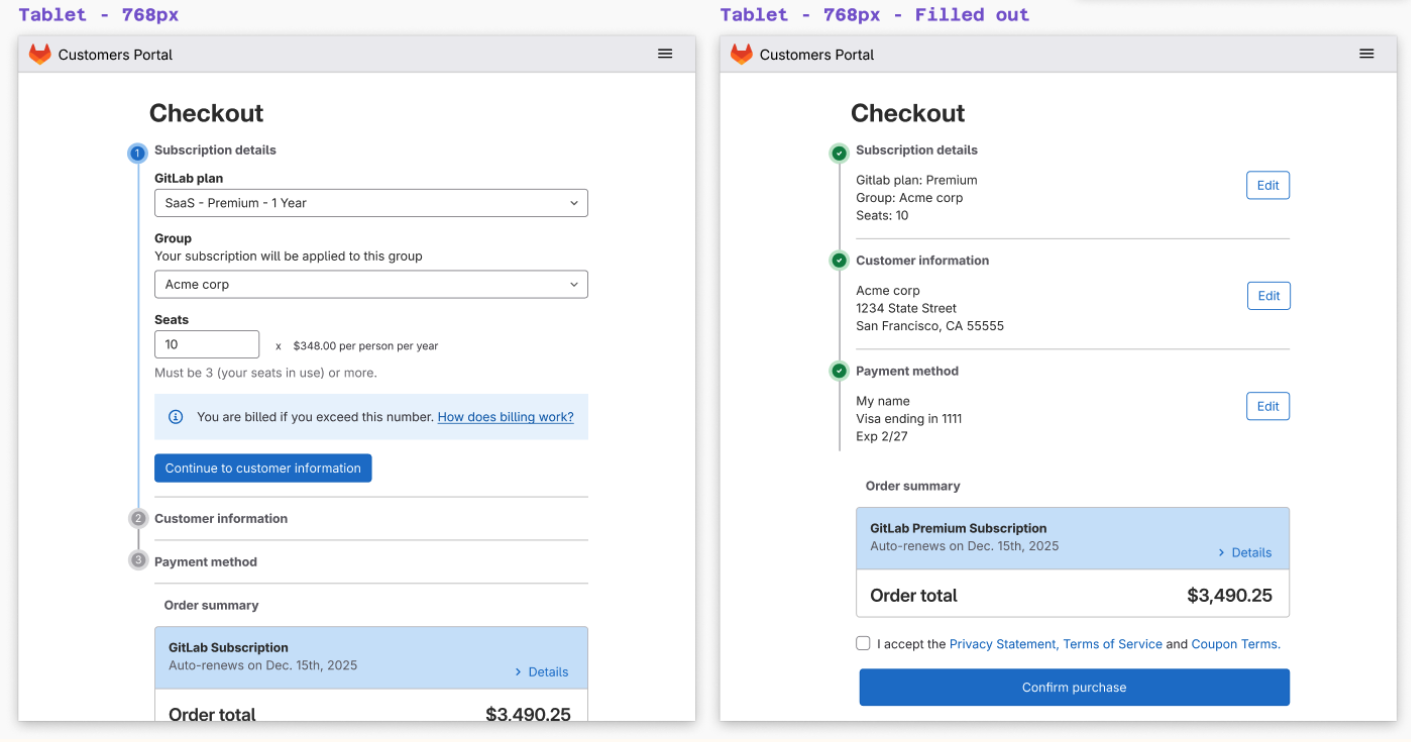 The Customers Portal purchasing platform at GitLab has suffered from systematic neglect, creating a fragmented user journey with significant usability barriers. This technical and design debt has produced an inconsistent experience that fails to scale with business growth, directly impacting conversion rates and customer satisfaction across our acquisition channels.